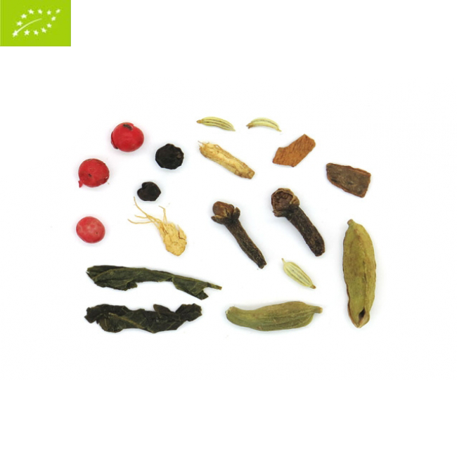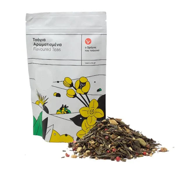 Ένα έντονα αρωματικό και ελαφρώς πικάντικο βιολογικό μίγμα στο οποίο η κυριαρχούσα, γνήσια μαστίχα Χίου συνδυάζεται με το πράσινο τσάι και αναδεικνύεται από τα μπαχαρικά που τη συνοδεύουν όπως κανέλα, πιπερόριζα, μάραθος, κάρδαμο, γαρύφαλλο και πιπέρι.